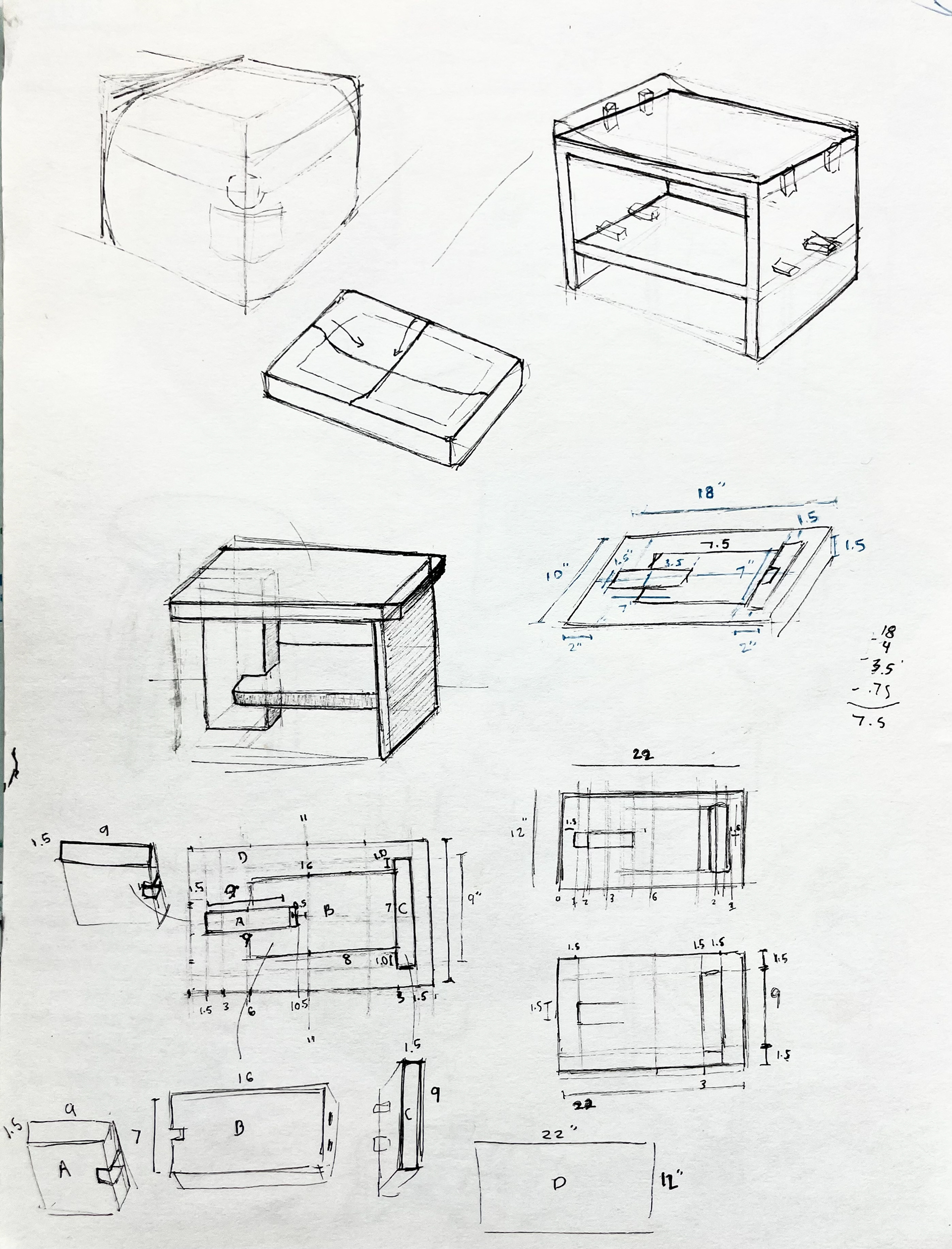 (laser-cut acrylic sheet, LED lights, silicone panels, cord)
