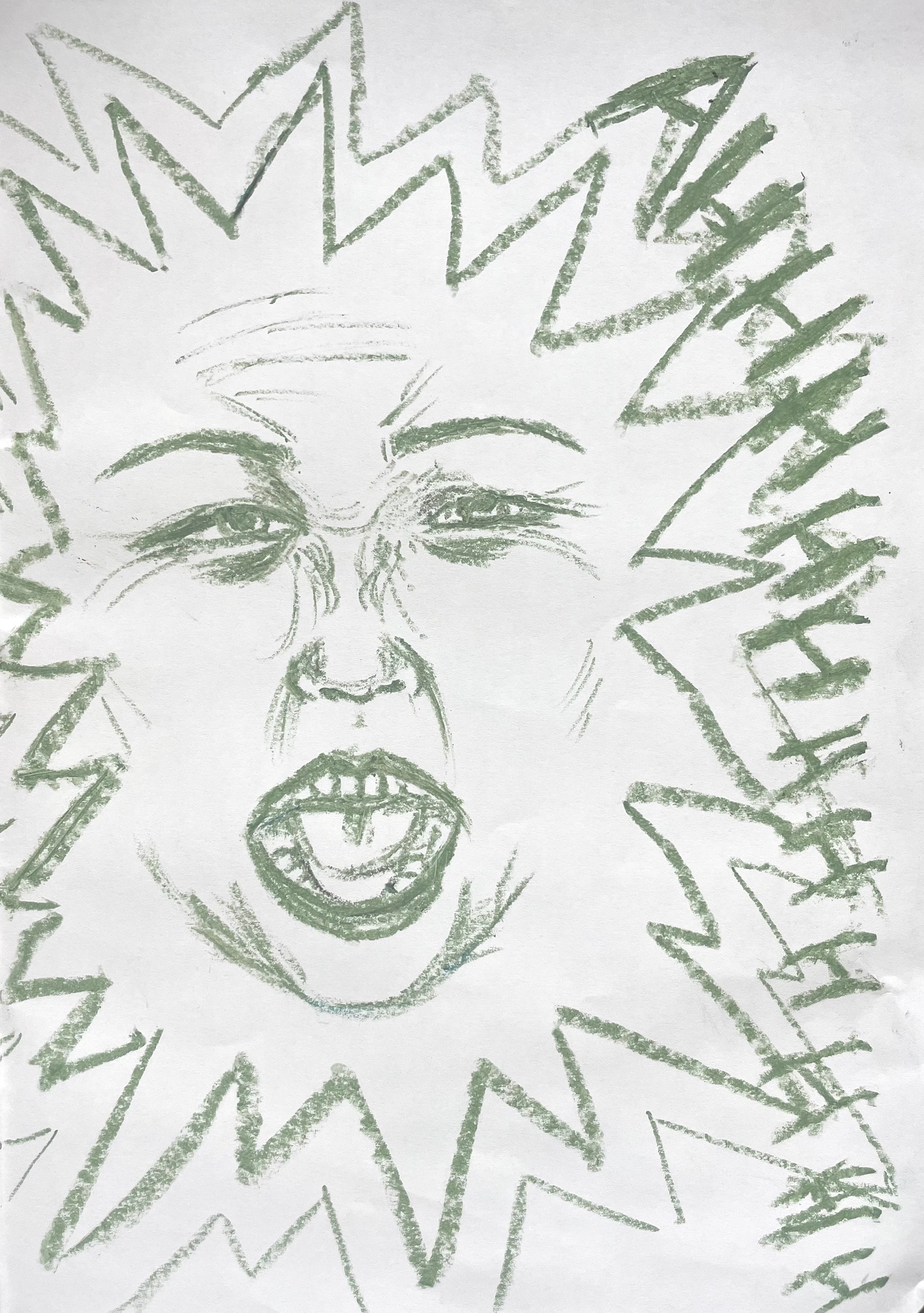 (thick acrylic medium, airbrush ink, chalk pastel, newspaper, spray paint)